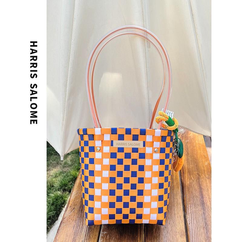 Harris Salome马赛克菜篮子小号单肩手提包(橘色)