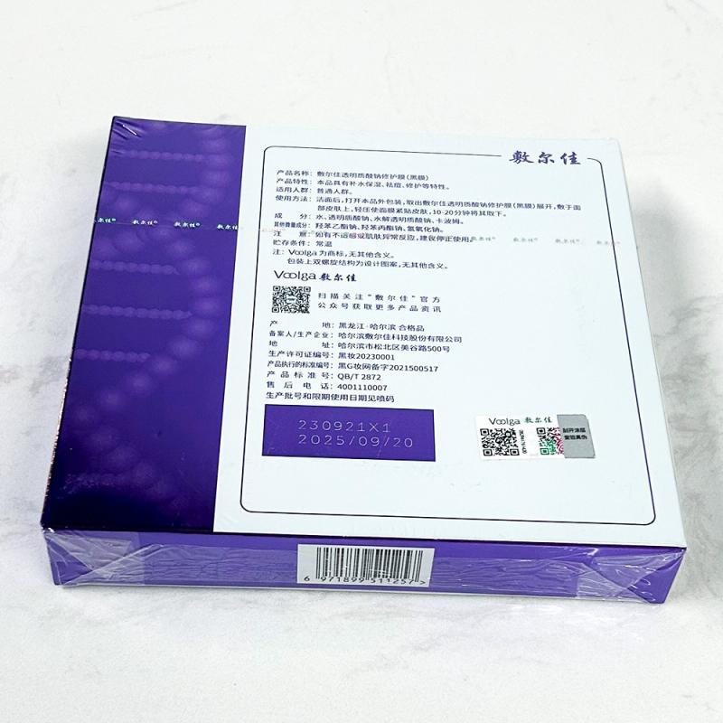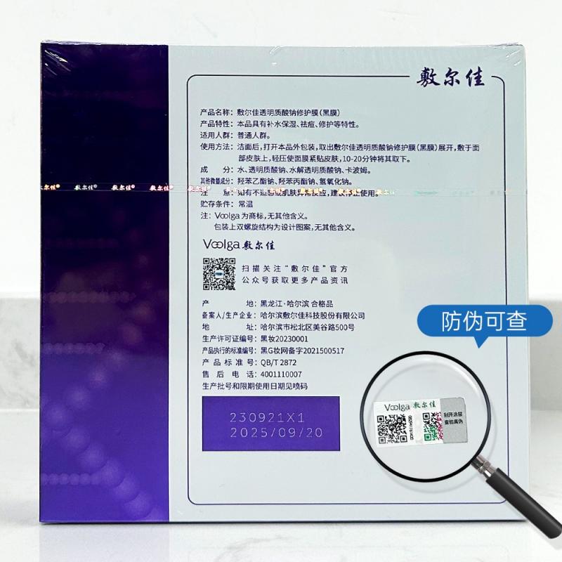 国内发货 敷尔佳 透明质酸纳修护膜(黑膜)30g*5贴 黑膜面膜 紫色