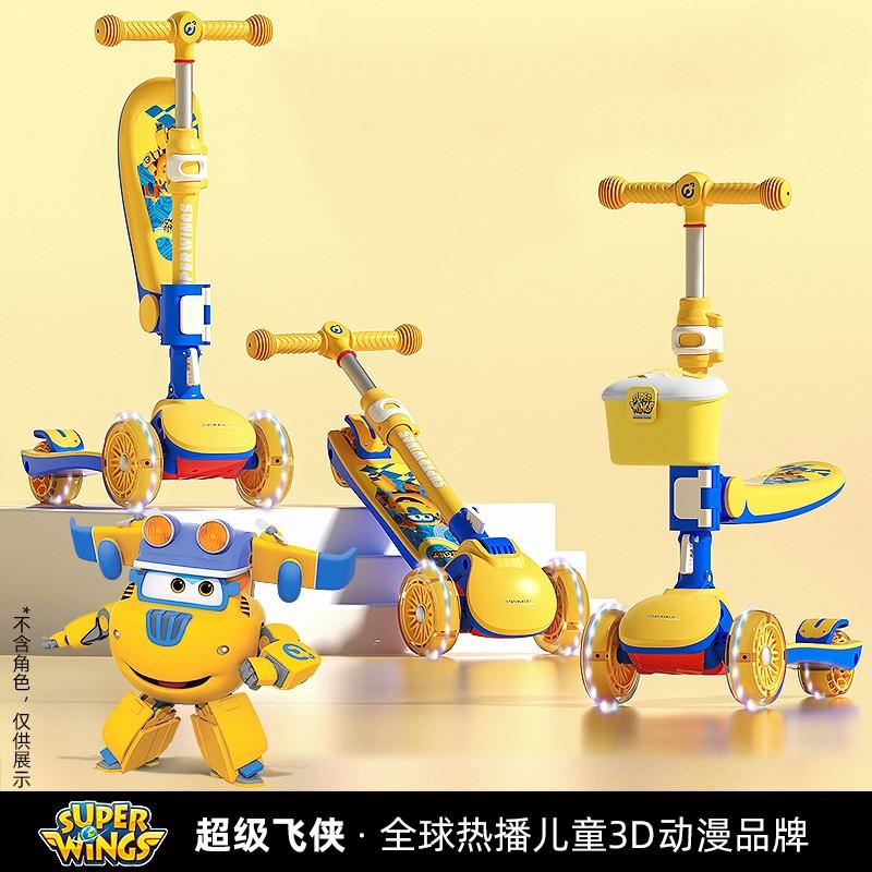 国内发货 超级飞侠三合一儿童滑板车 黄色多多766 带车筐