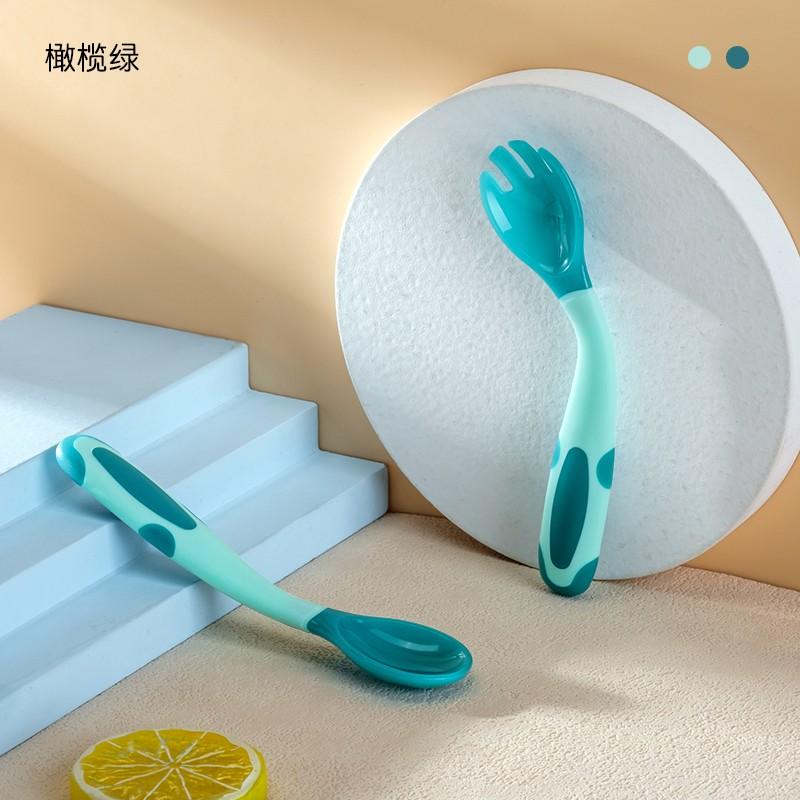国内发货 英氏YeeHoo#英氏蘑菇头温感变色训练叉勺橄榄绿