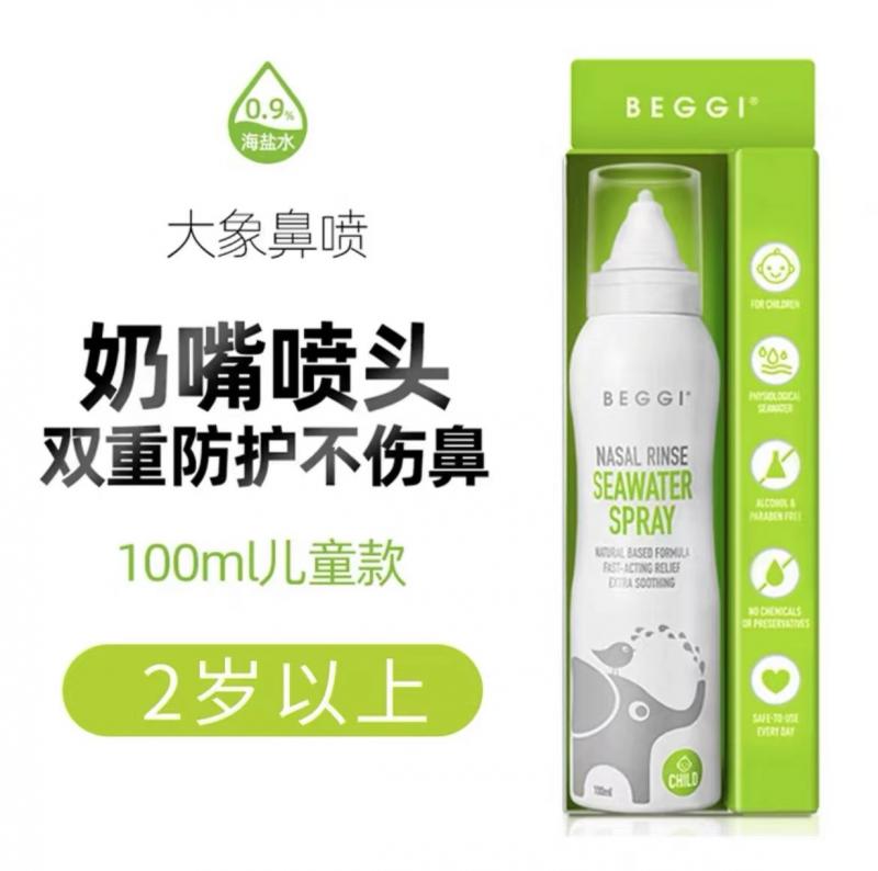 鼻精灵beggi大象鼻喷海盐水鼻腔喷雾剂儿童宝宝婴儿鼻塞洗鼻盐水100ml