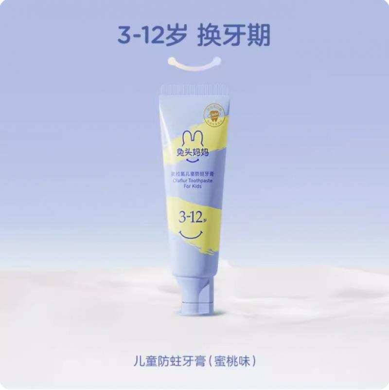 国内发货 兔头妈妈奥拉氟婴幼儿防蛀牙膏 3-12岁 50g水蜜桃味