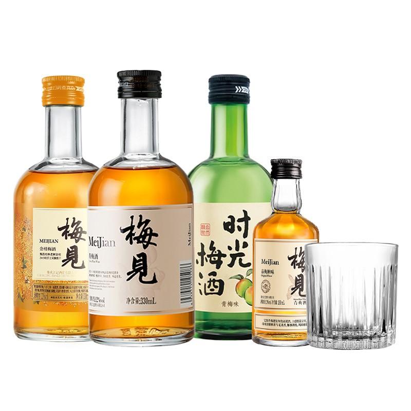 金桂梅见330ml+白梅见330ml +时光梅酒330ml赠梅见150ml+玻璃杯*1个